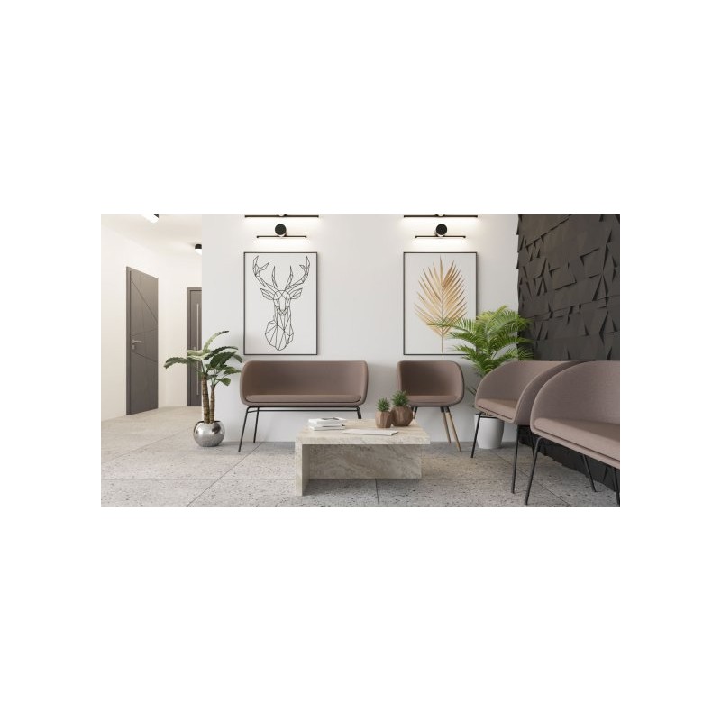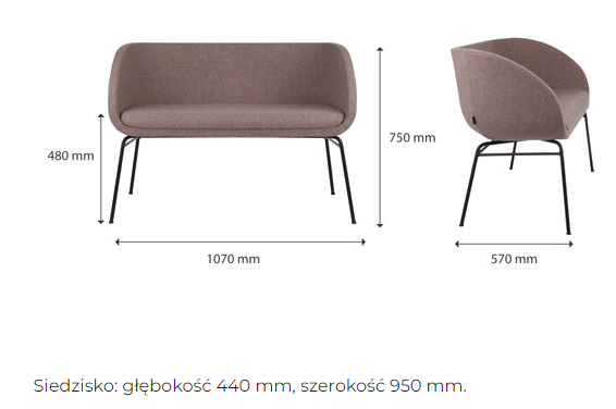 Dzięki lekkiej budowie i uniwersalnemu designowi, sofa wpisuje się zarówno we wnętrza klasyczne, jak i nowoczesne. Doskonale sprawdzi się w poczekalni, recepcji, kawiarni, sali konferencyjnej czy firmowym bufecie Produkt ten w całości został zaprojektowany i wyprodukowany w Polsce.