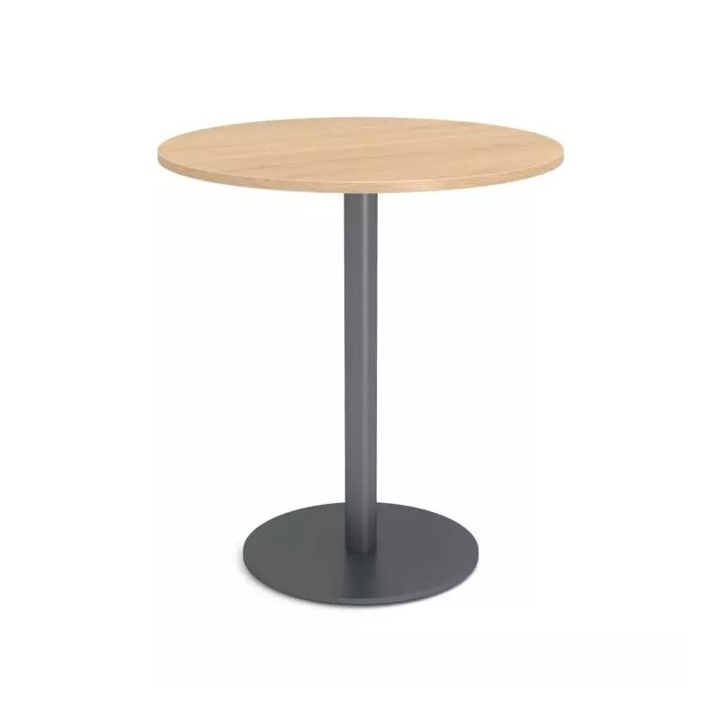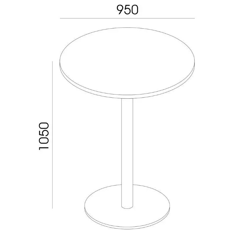 Stolik wysoki o średnicy blatu 95 cm oraz wysokości 105cm. Noga kolumnowa, na talerzu płaskim. Malowana proszkowo na kolory RAL.
