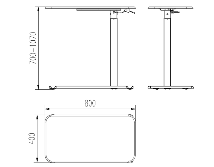 - Zakres regulacji wysokości stelaża 700-1070 mm