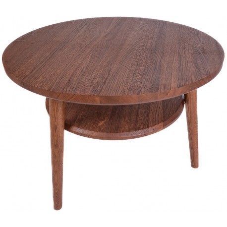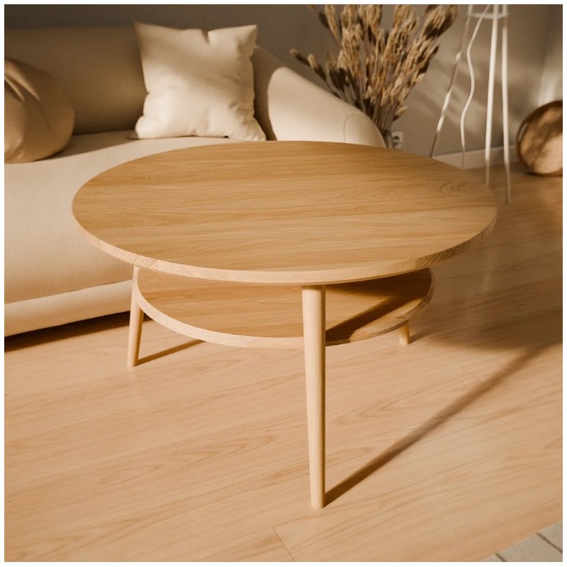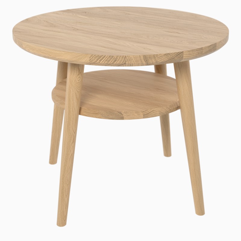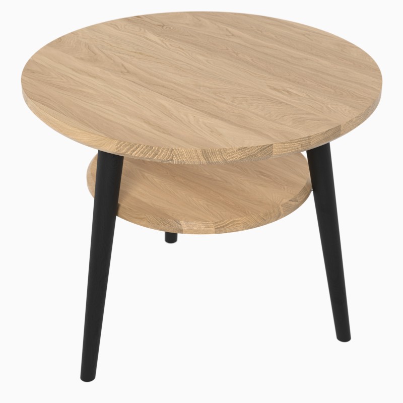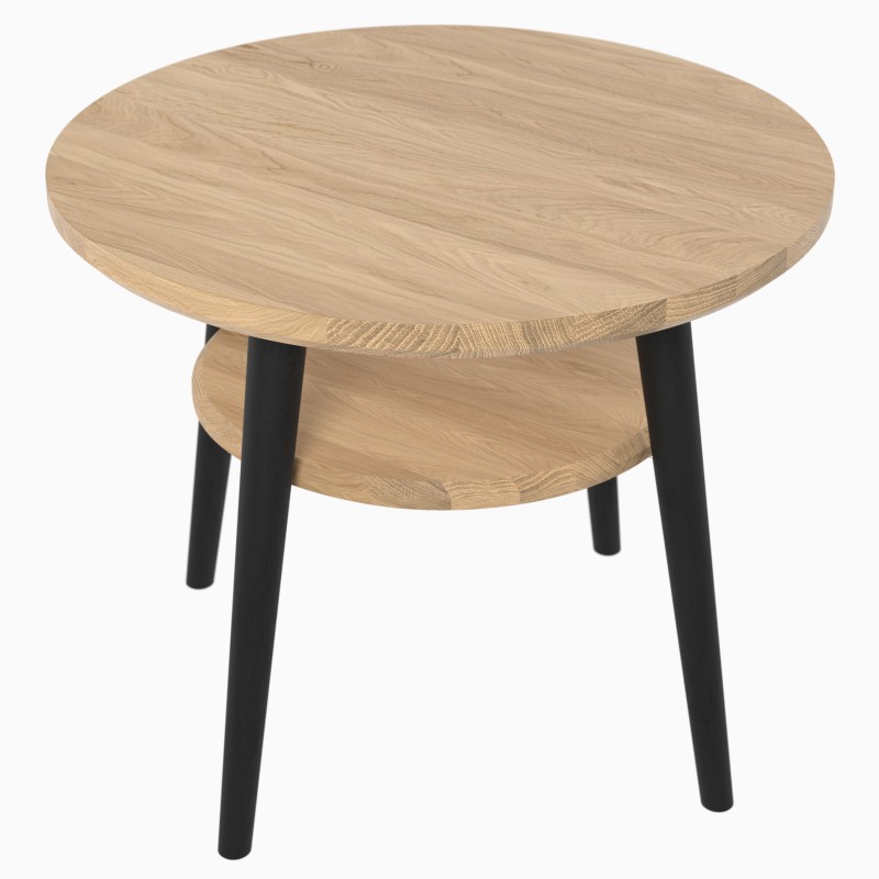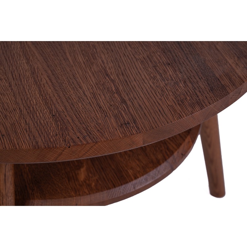 CINDER okrągły stolik z litego drewna z półką - DĄB