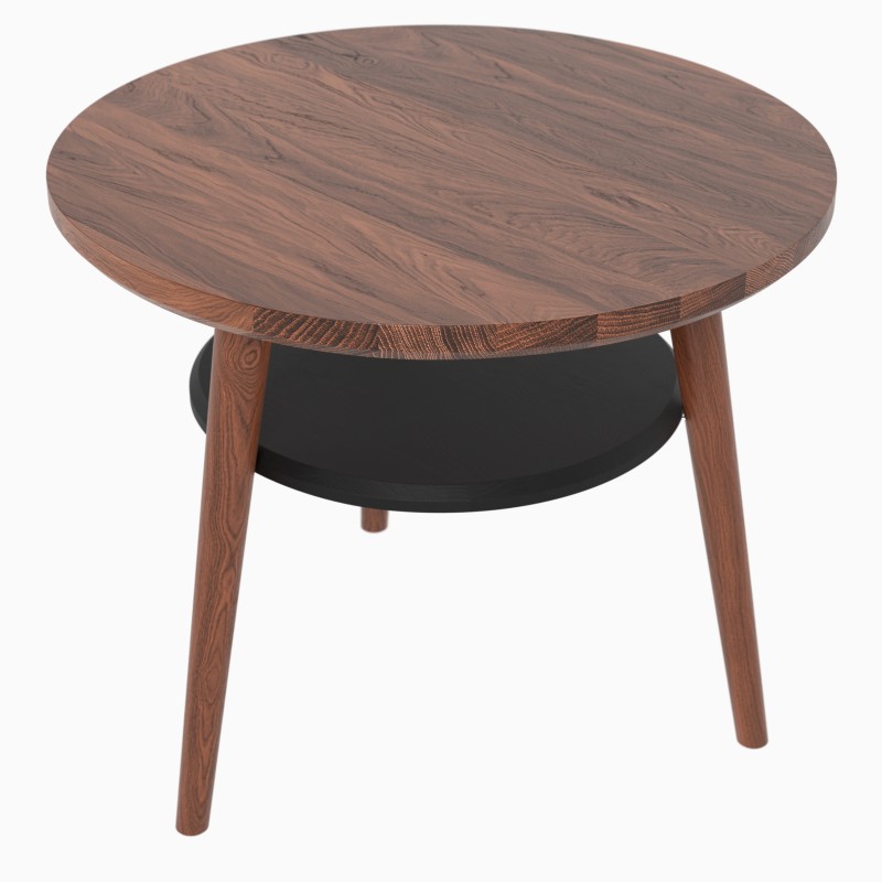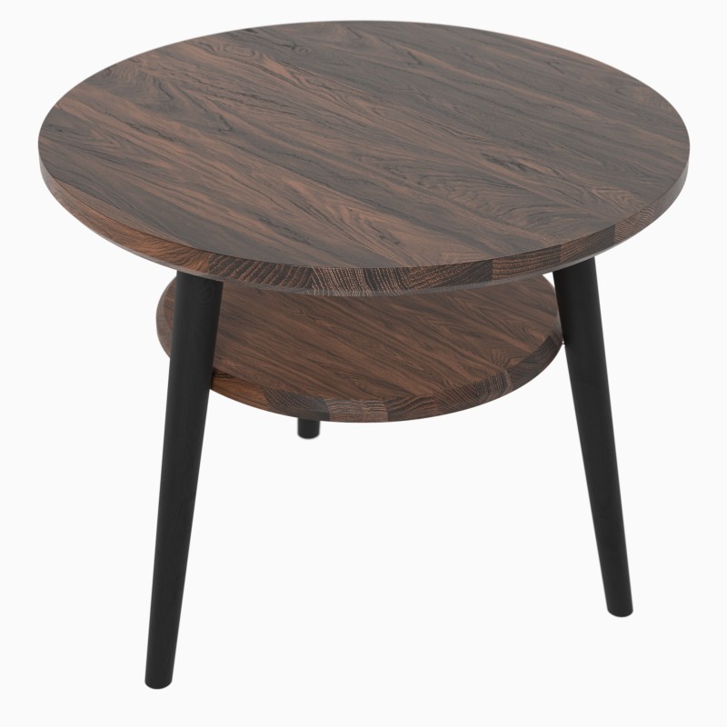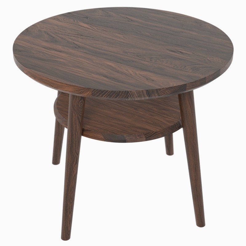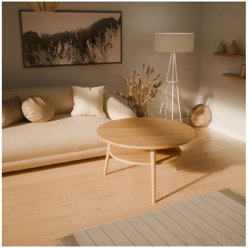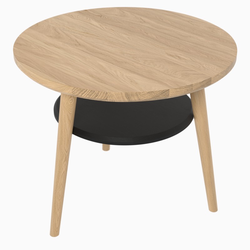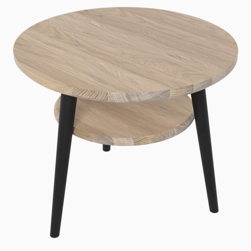 CINDER okrągły stolik z litego drewna z półką - DĄB