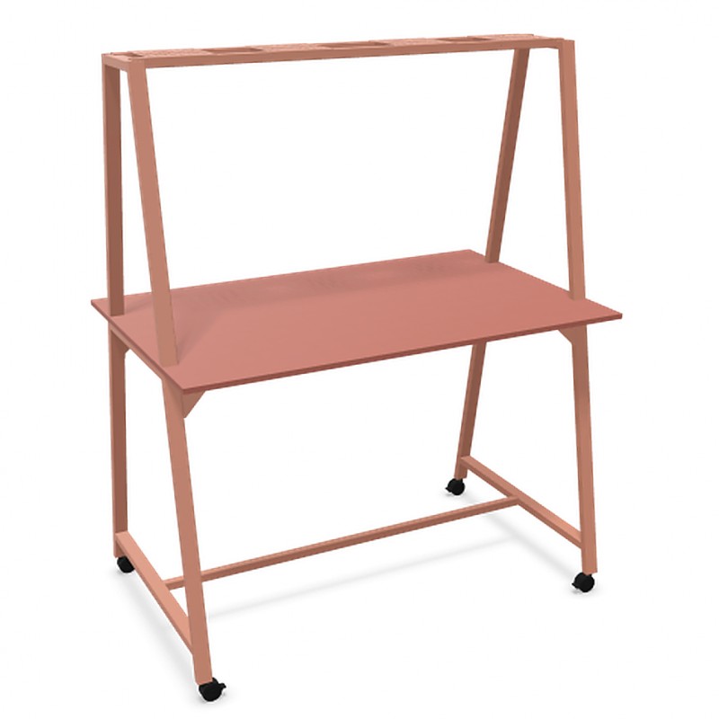 To model, który dobrze wygląda, ale jeszcze lepiej pracuje w praktyce. Wysoki stelaż pozwala montować akcesoria, takie jak donice czy uchwyty, więc stół można rozbudować zgodnie z potrzebami konkretnej przestrzeni.