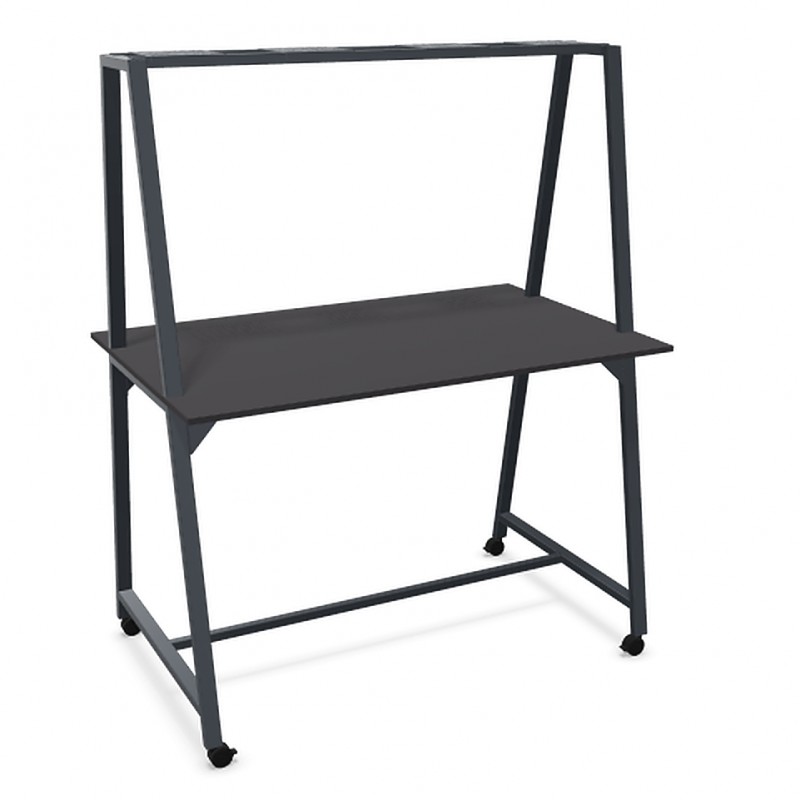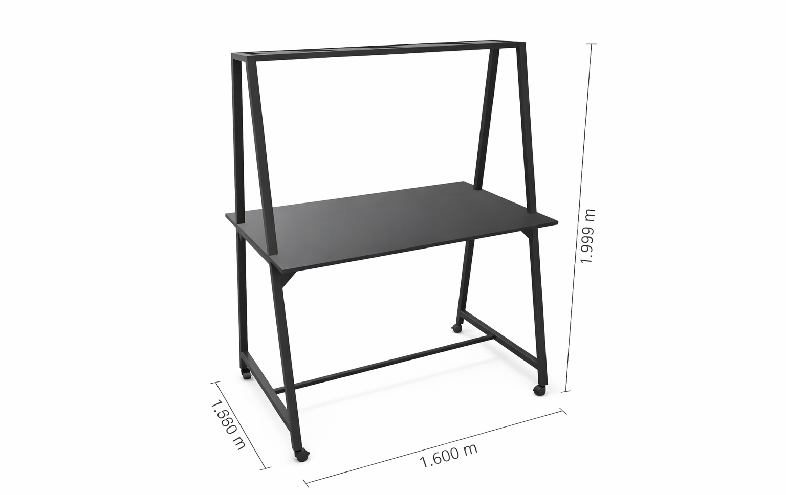 Największym wyróżnikiem tego modelu jest nadstawka, która porządkuje przestrzeń i daje więcej możliwości niż klasyczny wysoki stół. Zwiększa powierzchnię użytkową, ułatwia organizację materiałów, sprzętu i prezentacji, a przy tym buduje lekką, nowoczesną formę całego mebla.
