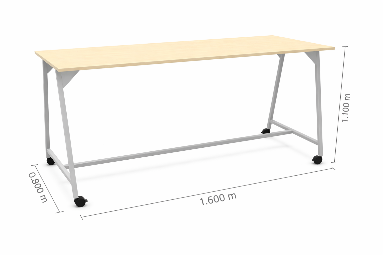 Stół wyposażono w kółka z blokadą, które ułatwiają szybkie przestawianie mebla i wygodne dopasowanie układu przestrzeni do aktualnych potrzeb zespołu. To szczególnie ważne tam, gdzie jedna strefa musi w ciągu dnia pełnić kilka funkcji — od krótkiego spotkania, przez pracę indywidualną, po spontaniczną naradę.