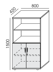 Szafka PROFI PREMIUM RLP-4 dwudrzwiowa z otwartą półką nad drzwiami. Przestrzeń na cztery rzędy segregatorów.