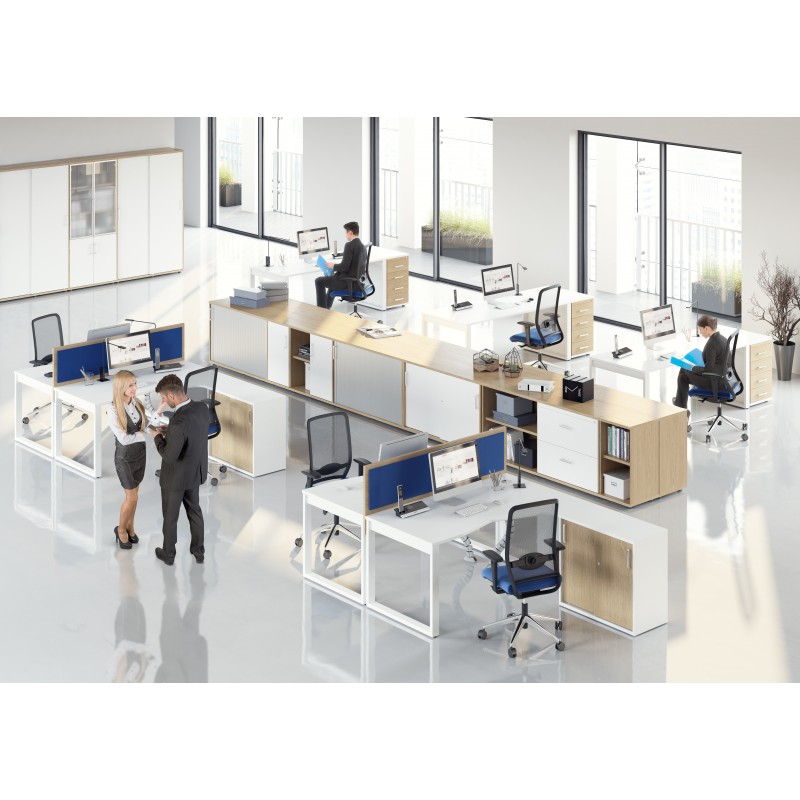 Szafa przesuwna, żaluzjowa RXP-9 jest wykonana z płyty melaminowanej obustronnie. Przestrzeń na 5 rzędów segregatorów.