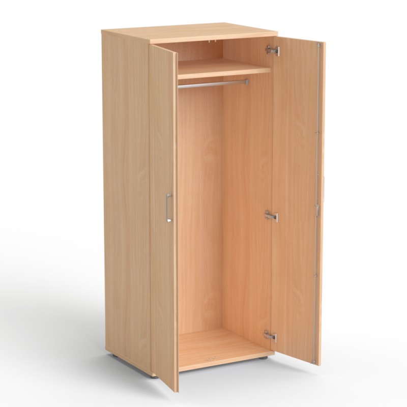 Szafa ubraniowa dwudrzwiowa RXP-11 jest wykonana z płyty melaminowanej obustronnie. Posiada jedną półkę i wieszak na ubrania.