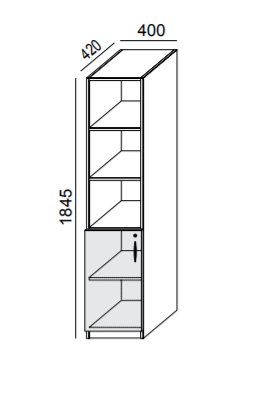 Szafka biurowa MTL-03 jest wykonana z płyty melaminowanej. Przestrzeń na 5 rzędów segregatorów.