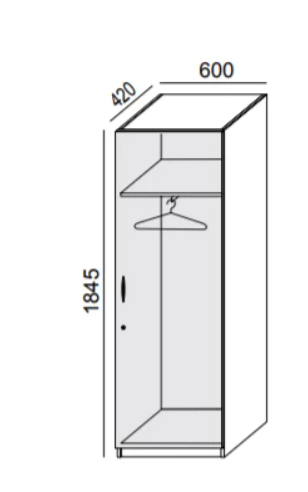 Szafa ubraniowa MTL-23 jest wykonana z płyty melaminowanej. W środku półka i wieszak na ubrania. Zamykana od lewej strony.