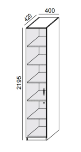 wysoka, wąska szafa o klasycznej budowie wykonana z najwyższej jakości płyty melaminowanej o gładkiej i łatwej w dezynfekcji powierzchni