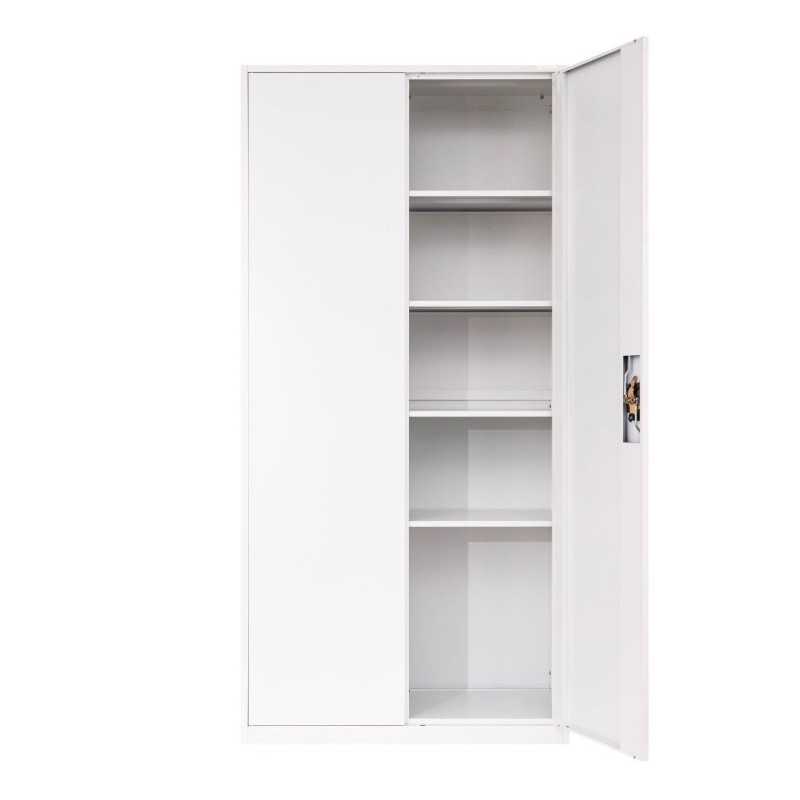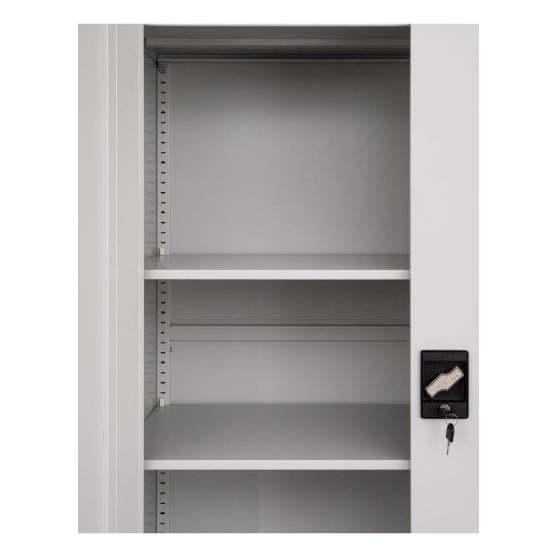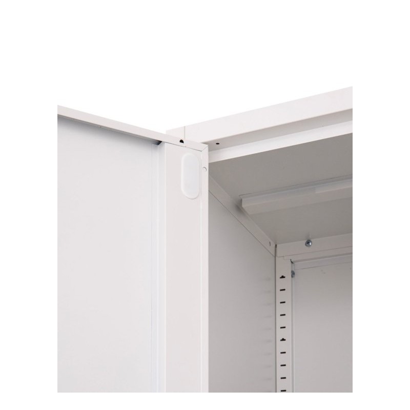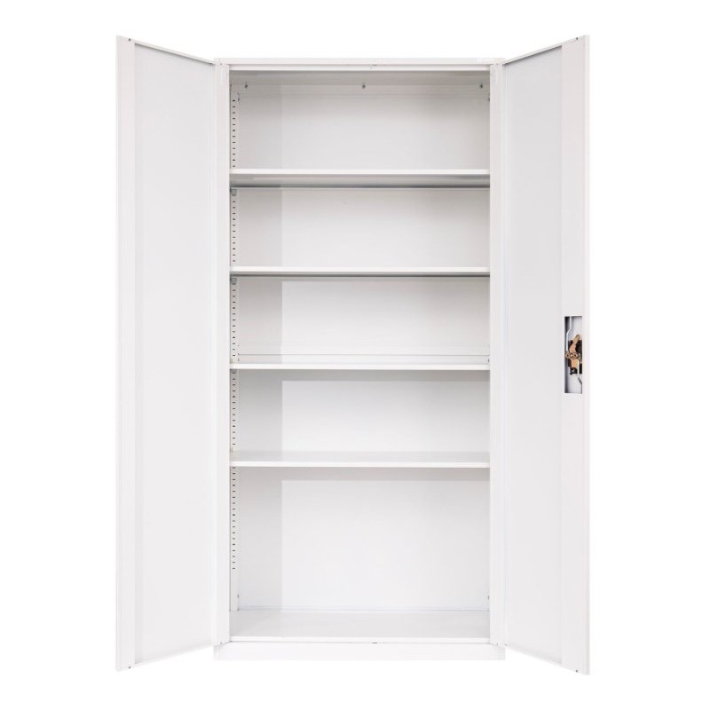 Gładka powierzchnia ułatwia utrzymanie szafy w czystości, a klasyczny biały kolor dobrze wpisuje się w nowoczesne przestrzenie biurowe, archiwa czy gabinety.