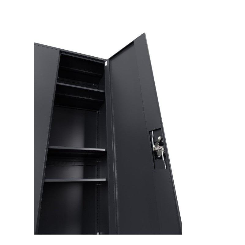 Gładka powierzchnia ułatwia utrzymanie szafy w czystości, a antracytowy kolor dobrze wpisuje się w nowoczesne przestrzenie biurowe, archiwa czy gabinety.